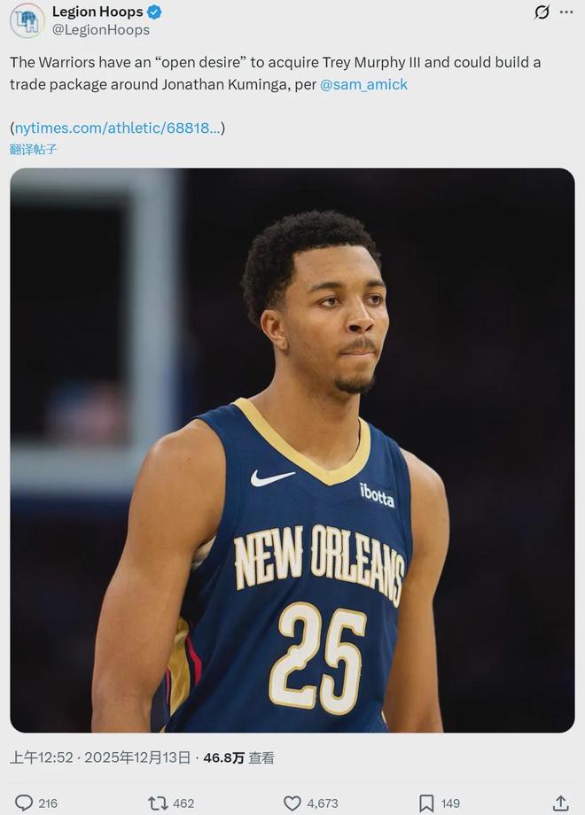 库明加连续两场被DNP,离队正式进入倒计时。你觉得勇士应该用库明加换来一个什么样的球员?