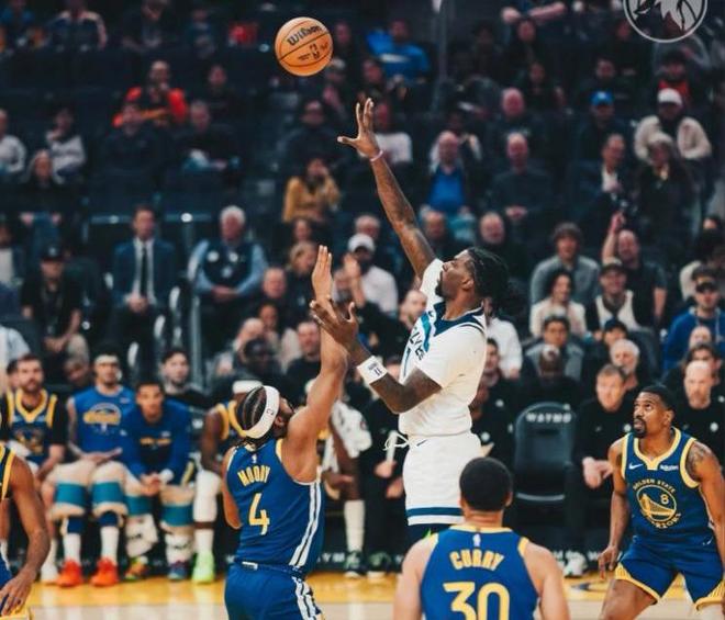 NBA常规赛,勇士主场迎战森林狼。本场比赛之前,勇士13胜12负排名西部第8,战绩勉勉强强;库里新赛季状态倒是不错,场均能拿27.9分3.7篮板4.0助攻,比前几年打得还更积极了;二当家巴特勒效率也很高,场均能拿19.5分5.7篮板5.0助攻,投篮命中率52%,三分命中率47%。